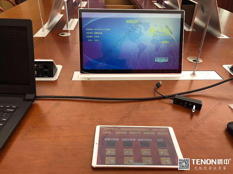 TENON無紙化會議系統(tǒng)概念的提出和運用實施使得會議從傳統(tǒng)的紙質為信息記錄和拖沓的演講轉化成以顯示器為載體的數字化、簡約化、移動化的交互式多媒體會議。無紙化會議系統(tǒng)作為智能會議系統(tǒng)的一個重要組成部分,是運行在PC、平板電腦上的新一代會議系統(tǒng),本系統(tǒng)采用全新的會議模式,將傳統(tǒng)會議過程中的各個環(huán)節(jié)虛擬化、主體信息和承載介質數字化,將多種信息化技術融入會議的各環(huán)節(jié)、貫穿會議全過程,將頻繁召開的會議全部搬上windows.安卓平臺,會議使用者在更短時間內清晰了解、交流更多的會議內容,完成多于以往的會議任務。