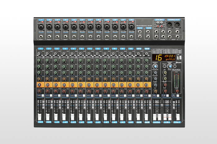 調(diào)音臺(tái)帶編組,12個(gè)話筒兼線路輸入