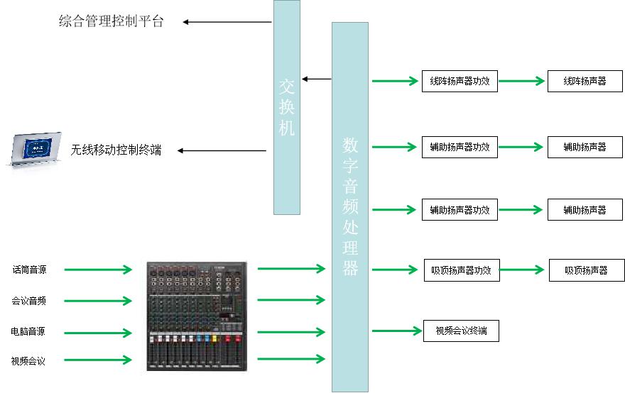 本次設(shè)計(jì)方案滿足面積大,樓層高,人數(shù)多,整體聲場均勻、聲壓足夠,傳聲增益符合國家要求;現(xiàn)場還加了舞臺燈光為各種匯演、娛樂增加更奪目的視覺效果,借助燈光對宴會(huì)慶典空間環(huán)境進(jìn)行整合設(shè)計(jì),將宴會(huì)慶典內(nèi)容展現(xiàn)給嘉賓;提供給嘉賓最大感官空間,使嘉賓在有限的時(shí)空中最有效地接受宴會(huì)慶典信息。運(yùn)用智能中央控制系統(tǒng),對整個(gè)授課過程的環(huán)境燈光的控制,主音量的控制以及課程中的信號切換。